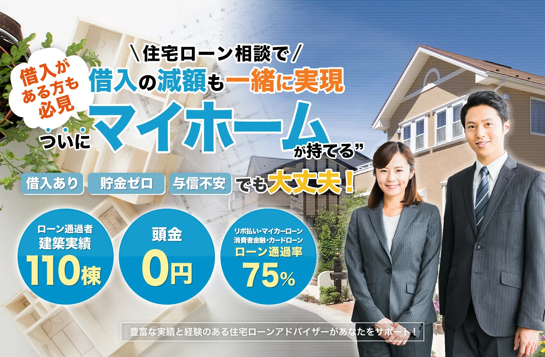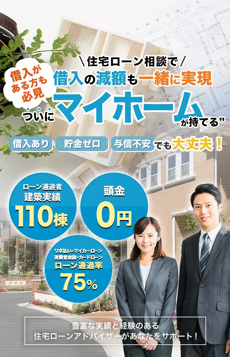 知識も経験も豊富なスタッフが在籍していますので、お客様の状況を把握し、お客様に合った銀行との準備&交渉を重ね、借金などの事情がある方にも親身に対応します!